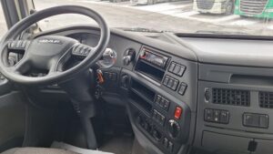 Klimatizace, LED denní svícení, vzduchem odpružené a vyhřívané sedadlo řidiče, fixní sedadlo spolujezdce, multifunkční volant, audio Pioneer 1DIN s Hands free, vysílačka, tempomat, teplovodní nezávislé vytápění kabiny s časovačem, lednice, 2x lůžko, elektrické střešní okno, dálkové ovládání ECAS, Motorová brzda MX, Odpružení kabiny mechanické.